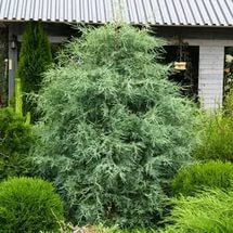 Можжевельник скальный «Скайрокет» - один из самых красивых видов можжевеловых кустов. Крона, по форме напоминающая колонну, и хвоя сине-голубого цвета придают кустарнику необычайную декоративность. В нижней части Скайрокет расширяется; его побеги растут прямо, тесно прилегают к стволу. Как и многие хвойные растения для сада, этот кустарник является медленнорастущим (в течение десяти лет он набирает около трех метров в высоту).