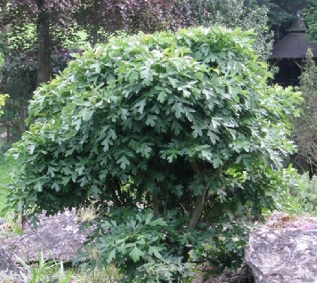 При цветении имеет белые цветки, которые собранны в щитки. Период цветения – это май-июнь, сразу после того, как распустятся листья.