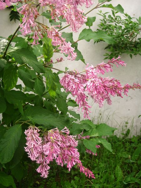 Сирень пониклая – куст высотой до 4 метров с уходящими вверх прямыми ветками. Кора растения темно – серая и с частыми чечевичками. Раскрытые листья принимают яйцеобразную форму с легким удлинением. Они довольно крупные, примерно от 8 до 15 см длинные, с четко различимыми жилками.