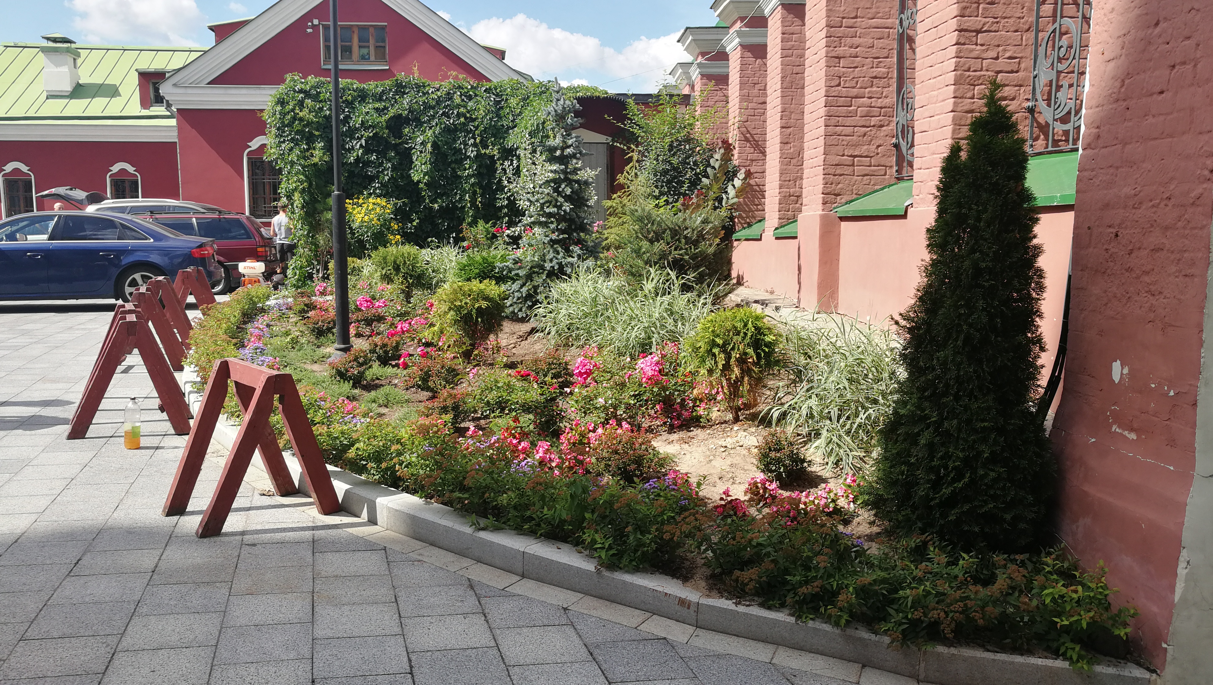 Осенью 2017 года после посещения Храма, Митрополит Истринский Арсений, дал благословение на реконструкцию зеленых насаждений на территории около 1,5 Га принадлежащей Храму. Были внесены определенные пожелания , которые были учтены при разработке плана. После сбора пожертвований в течении зимы, весной мы приступили к работе и практически все что было задумано реализовали к концу 2018 года. Также настоятель Храма Ионна воина о. Геннадий дал благословения на постуходные работы котороые мы с удовольствием в течении сезона 2018 выполняли, делали топиарные стрижки хвойным, обрабатывали агрохимикатами, имунномодуляторами, пололи, рыхлили. поливали, восстанавливали декоративный вид растений.