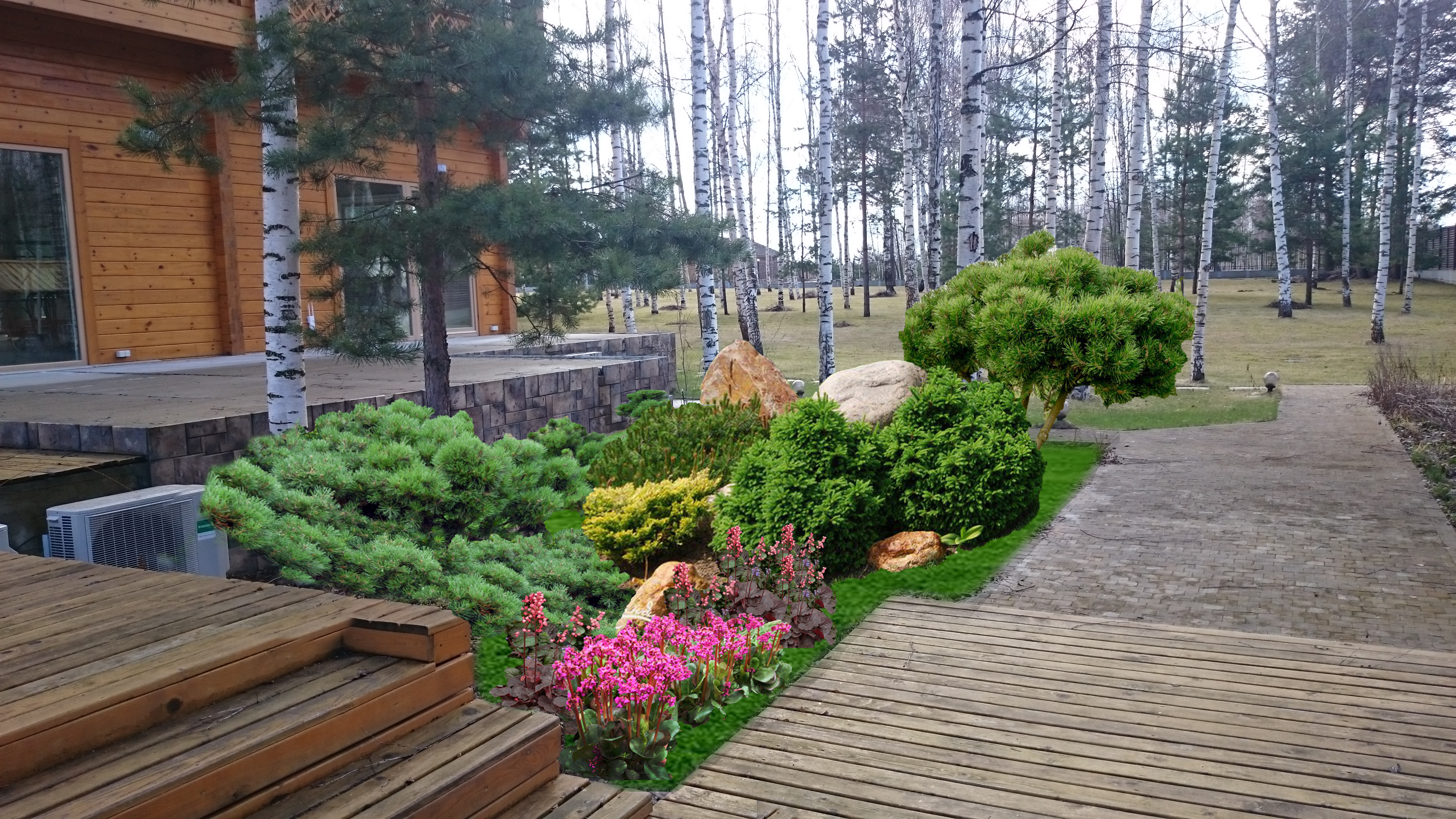 Вы сможете посмотреть созданный дизайн с любой точки, например, из беседки, окна, со стороны водоема, дома, калитки и так далее.